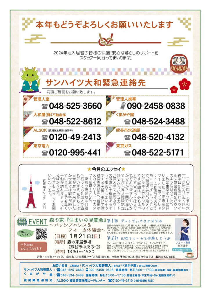 マンション情報誌「ふれんど1月号を発行しました┃サンハイツ大和