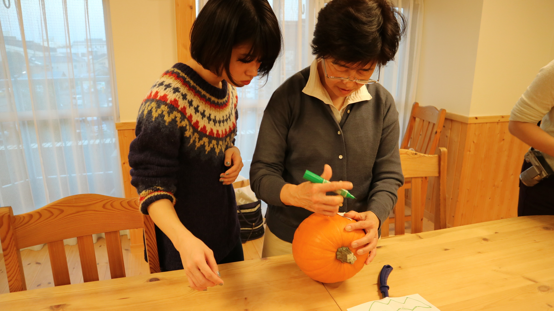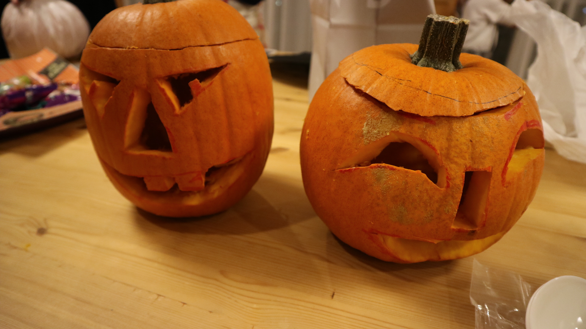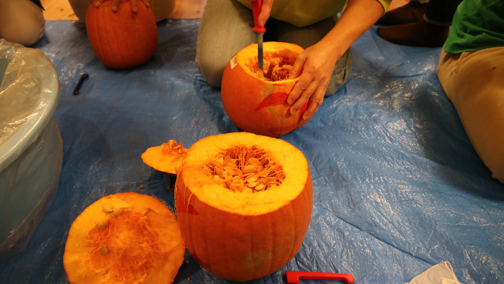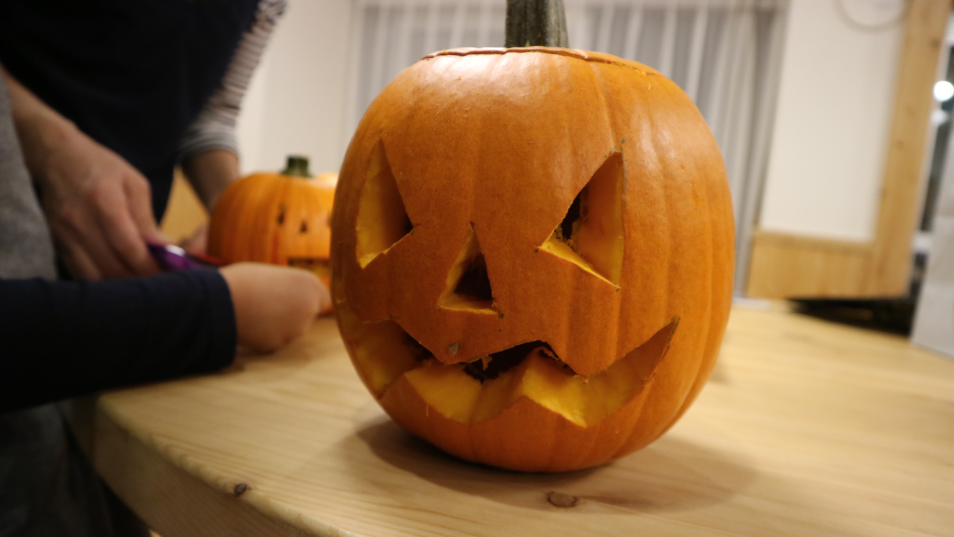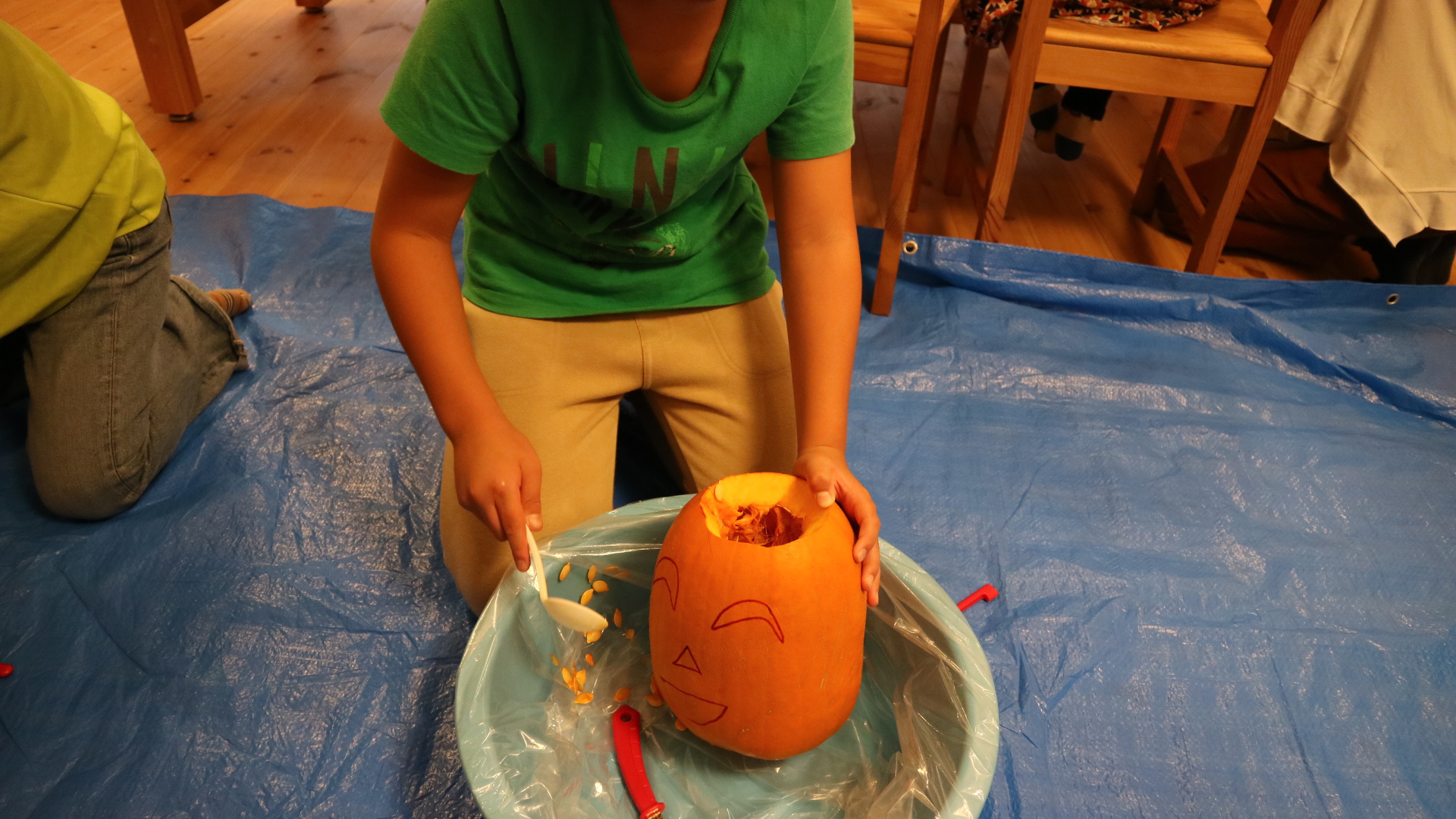 かぼちゃが思った以上に固かったので子供は大変な作業でした…が