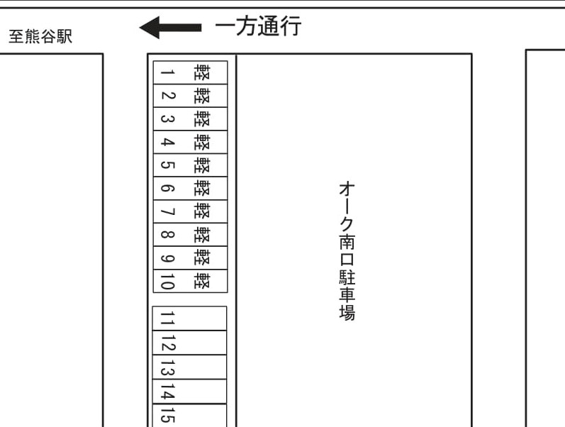 オーク南口立体駐車場の西側にある月極区画です。管理人常駐のオーク駐車場脇なので、安心感は抜群!駅南口まで徒歩3分と便利な上、夜間の帰宅でも照明があり、特に女性にお勧めの駐車場です!