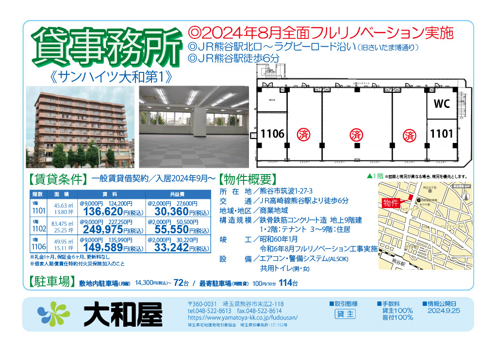 埼玉県熊谷市の賃貸マンション・月極駐車場・時間貸駐車場は大和屋株式会社